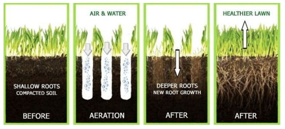 Tento efekt se dá jednoduše zvrátit pomocí aerifikace, díky tomuto regeneračnímu zásahu se dá postupně zlepšit i velmi špatně vypadající trávník.